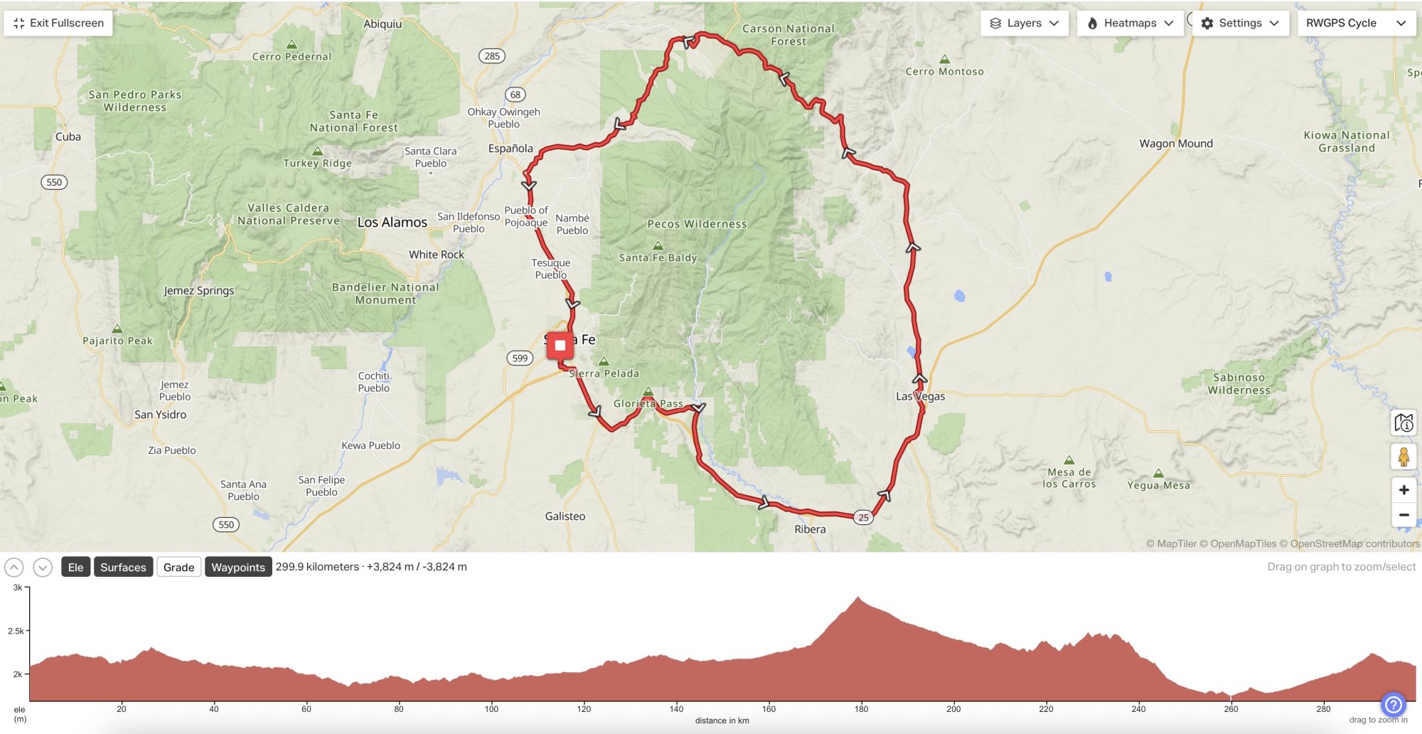 A ~300m excursion from the Zia Road Rail Runner Station in Santa Fe to the city of Las Vegas, traversing a mountain range to the town of Mora through many locales circumnavigating many surrounding areas, then heading back South to Santa Fe. This brevet route was created as preparation for Paris-Brest-Paris 2027…